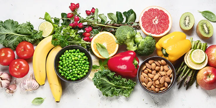A diet rich in fibre and healthy fats includes fruits, vegetables, whole grains, nuts, seeds and healthy oils. These foods help support the bugs that keep the gut healthy.