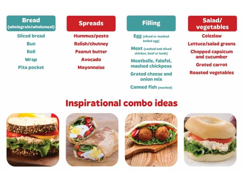 As the parent or caregiver, provide a few healthy options that kids can choose from. This ensures their lunch will be healthy and sustaining but still allows them choice and control.