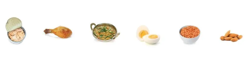 Proteins such as legumes, fish, seafood, eggs, poultry and meat