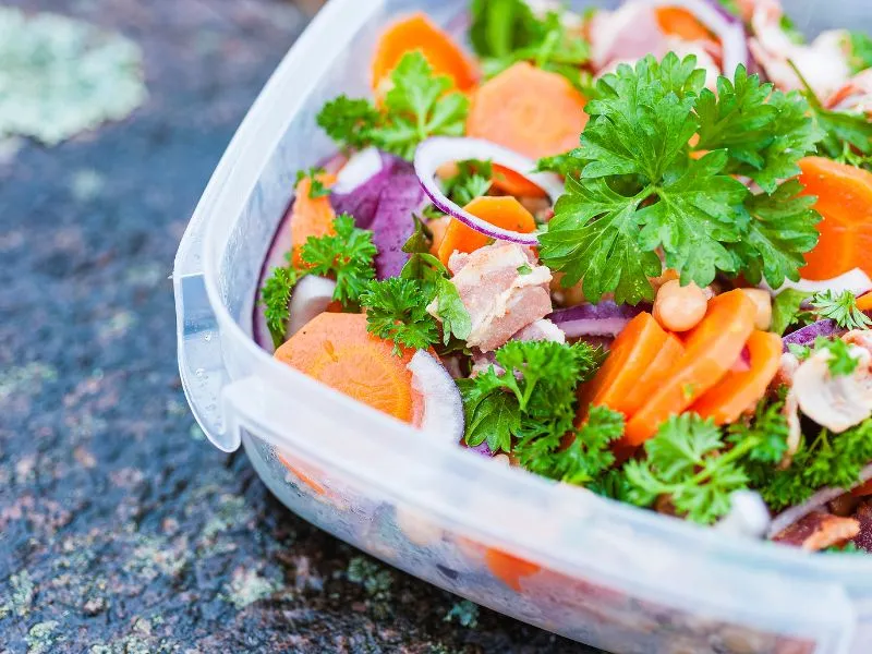 You can put together salads that keep in the fridge for a couple of days. Bagged coleslaw mixes can be used for several meals and will keep in the fridge for 3–4 days.