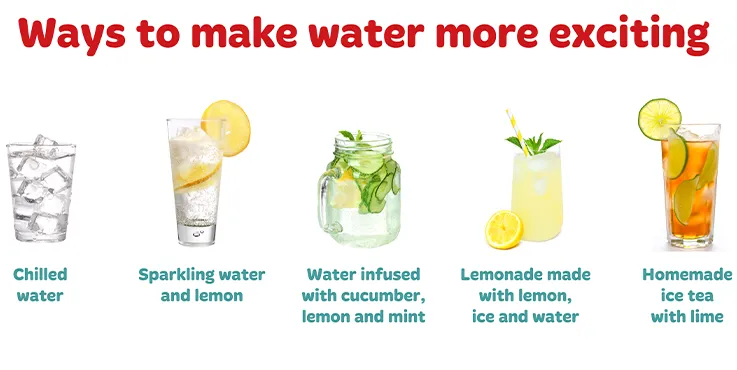 2. If you don’t enjoy the taste of tap water, make it more appealing. Keep chilled water in the fridge, invest in a soda stream or add ice or a slice of lemon.