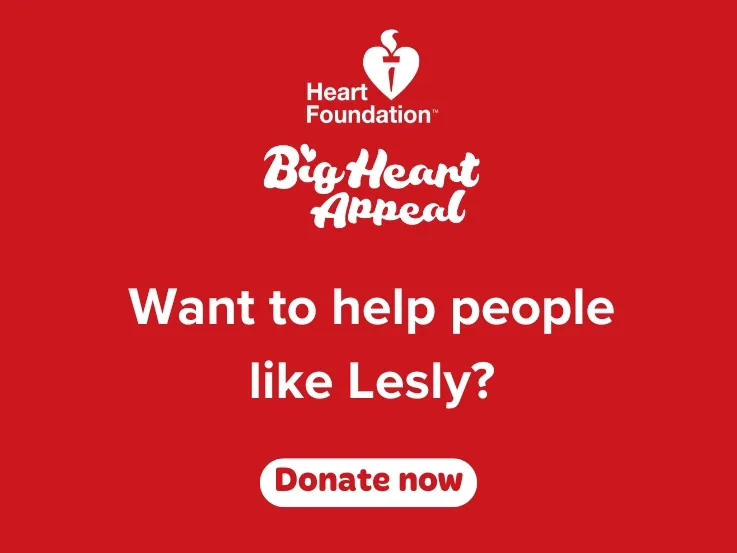 After losing her partner to a heart attack and facing years of her own heart issues, Lesly now manages her health with a pacemaker, staying active and supporting the Heart Foundation to raise awareness about heart health.