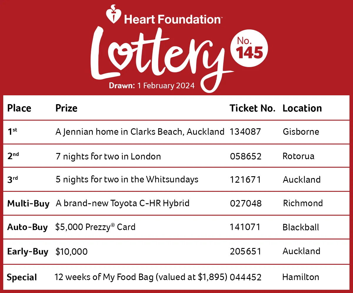 Were you a lucky winner? Check to see if you have won a prize in the latest Heart Foundation Lottery draw!