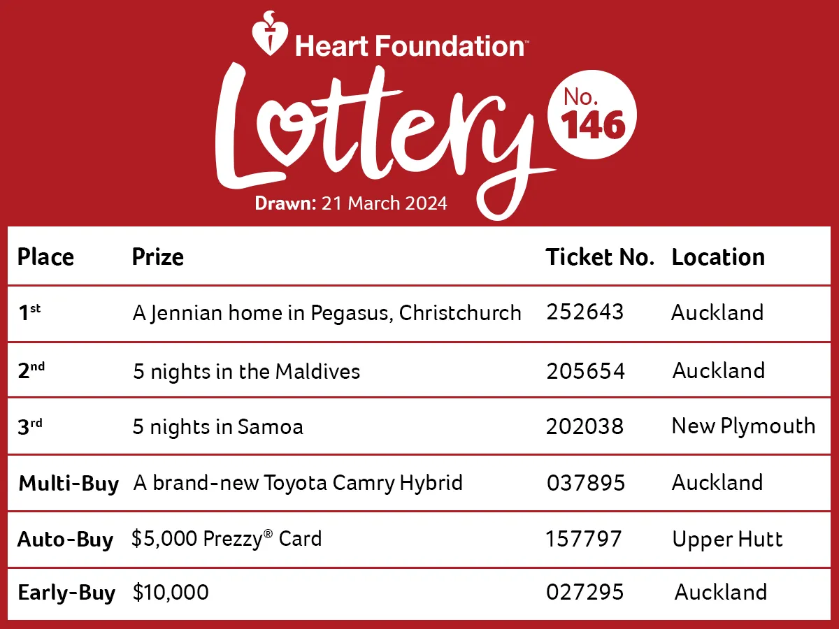 An image of the ticket winners of Heart Foundation Lottery No.153