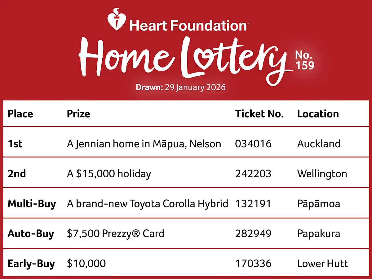 Latest Heart Foundation Home Lottery results