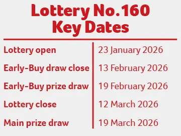Buy tickets in Heart Foundation Home Lottery No. 160 to be in to win our exciting second prize.