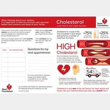 Download or order this A5 pamphlet to help you understand cholesterol. You can use this resource to talk to your doctor or nurse about ways to manage high cholesterol.
