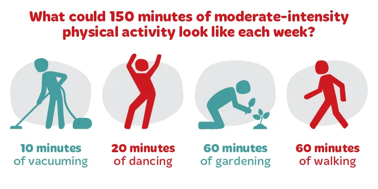 Every minute counts. If you do more physical activity than this, it's even better for your heart health.