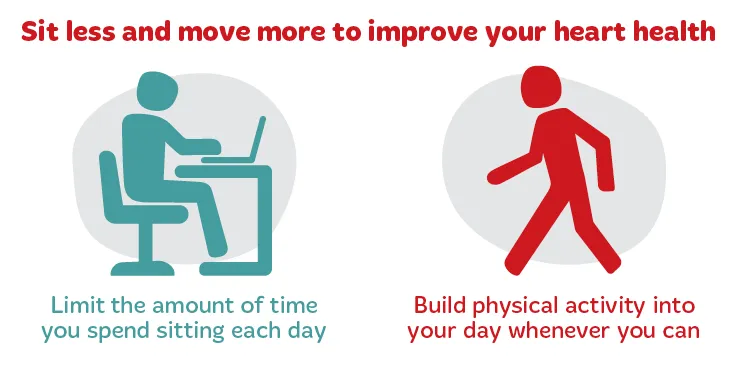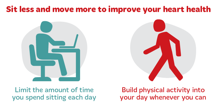 Sit less and move more every day to improve your heart health. Find out how much physical activity you need to do each week, and what counts.