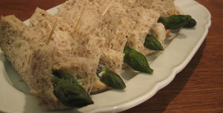 7. Lay one asparagus spear on each slice of bread