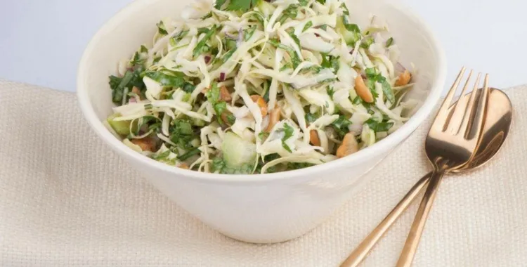 1. Combine the cabbage, red onion, cucumber, peanuts and fresh herbs in a large bowl