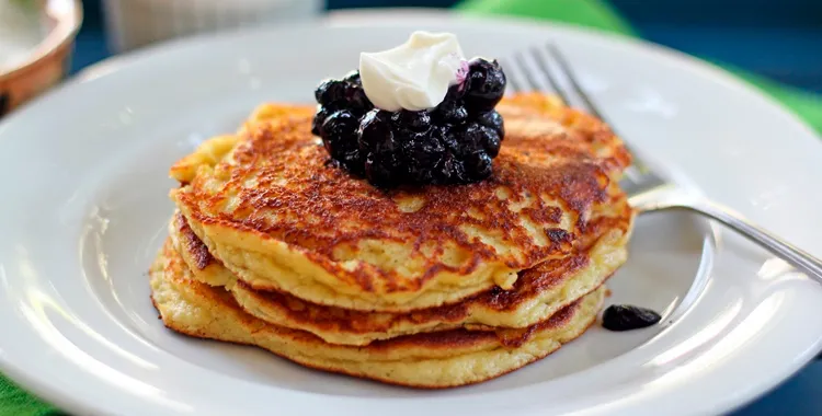 These pancakes are light and fluffy and perfectly matched with the fruity topping