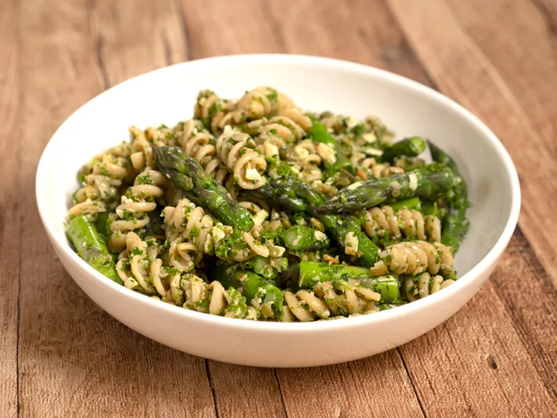 5. Drain pasta and asparagus and mix with herb mixture before serving