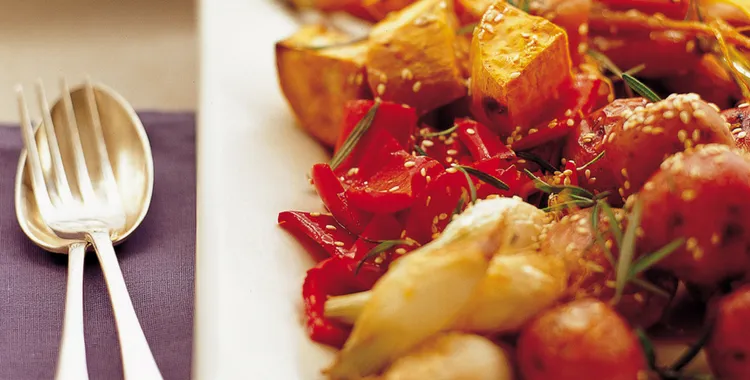 • Use cumin seeds instead of sesame seeds, add crumbled Feta and fresh herbs to the roasted vegetable and combine with a light vinaigrette.