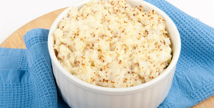 2. Put potatoes in a saucepan half full with boiling water. Cook about 10 minutes, until tender. Drain and leave in saucepan to dry out a little. Mash with 1 Tbsp margarine and 2 Tbsp milk, then stir through wholegrain mustard.