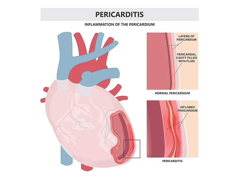 The most common cause of pericarditis is a viral infection such as the flu or COVID-19. In other cases, it can be caused by: