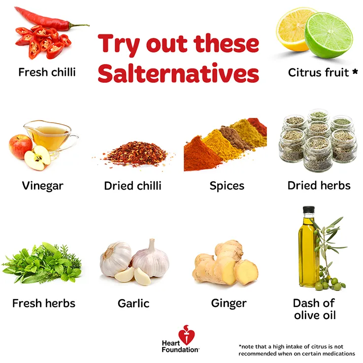 Choose foods with ‘no added salt,’ ‘unsalted,’ ‘low-salt’ or ‘reduced salt’ on the packet.